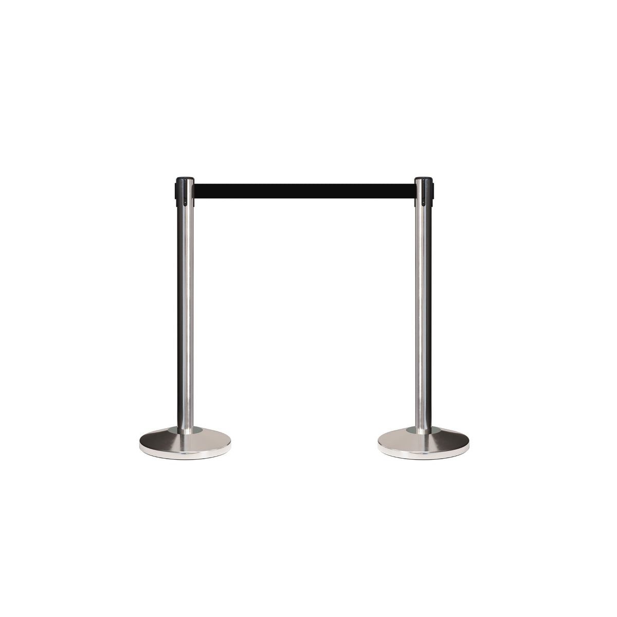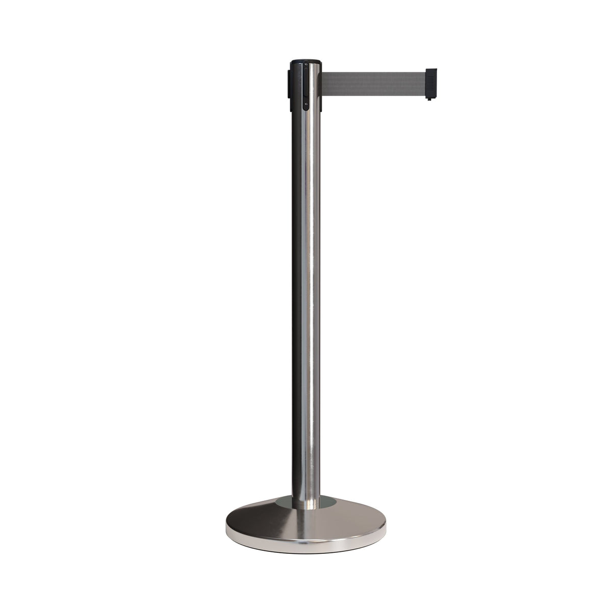 Retractable Belt Barrier Stanchion, Polished Stainless Post, 7.5 Ft. Belt - CCW Series RBB-100