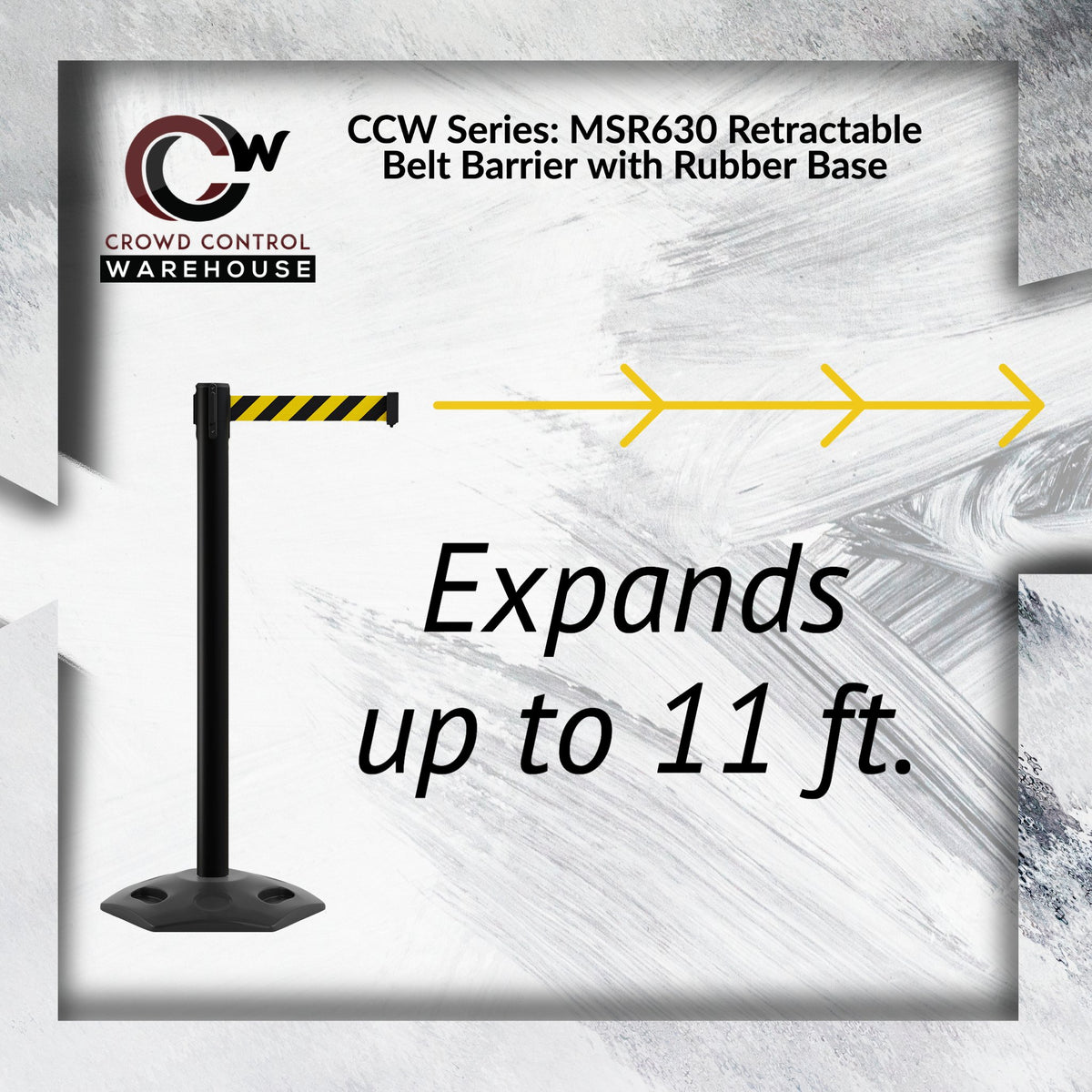 Outdoor Safety Retractable Belt Barrier, Rubber Base, 11 Ft. Belt - Montour Line MSR630