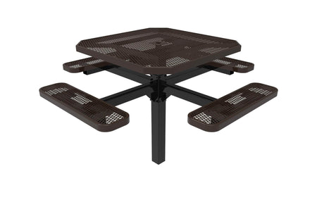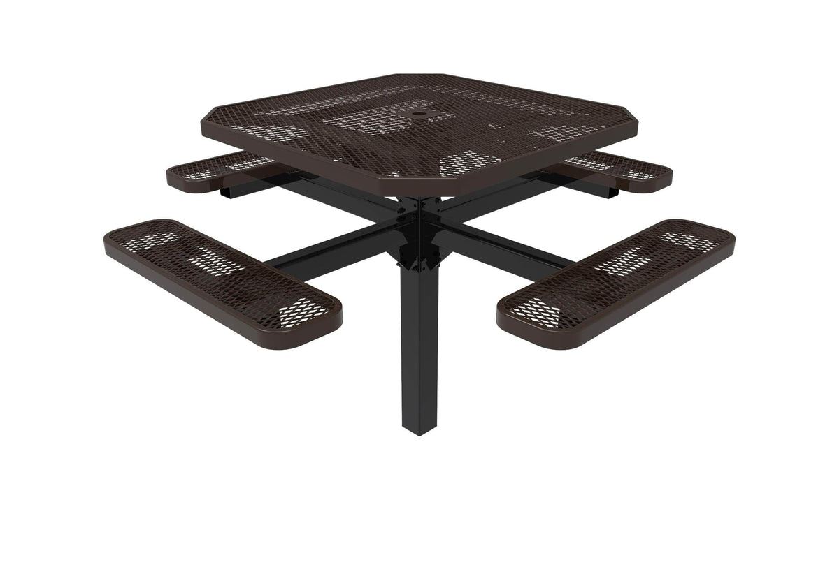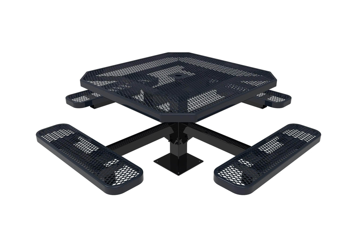46" Octagon Pedestal Picnic Table with 4 Seats – Diamond Pattern / Expanded Steel
