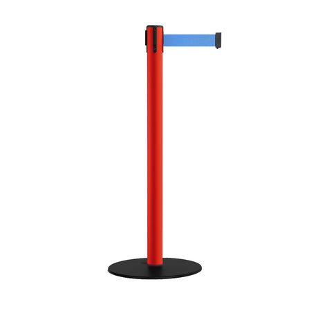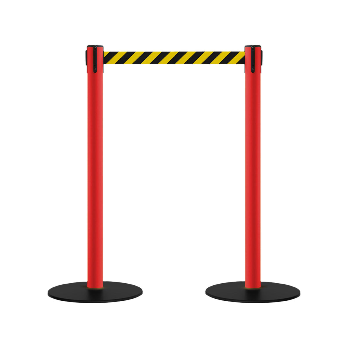 Safety Retractable Belt Barrier Stanchion, Low Profile Steel Base, Red Post, 11 Ft. Belt - Montour Line MSX630