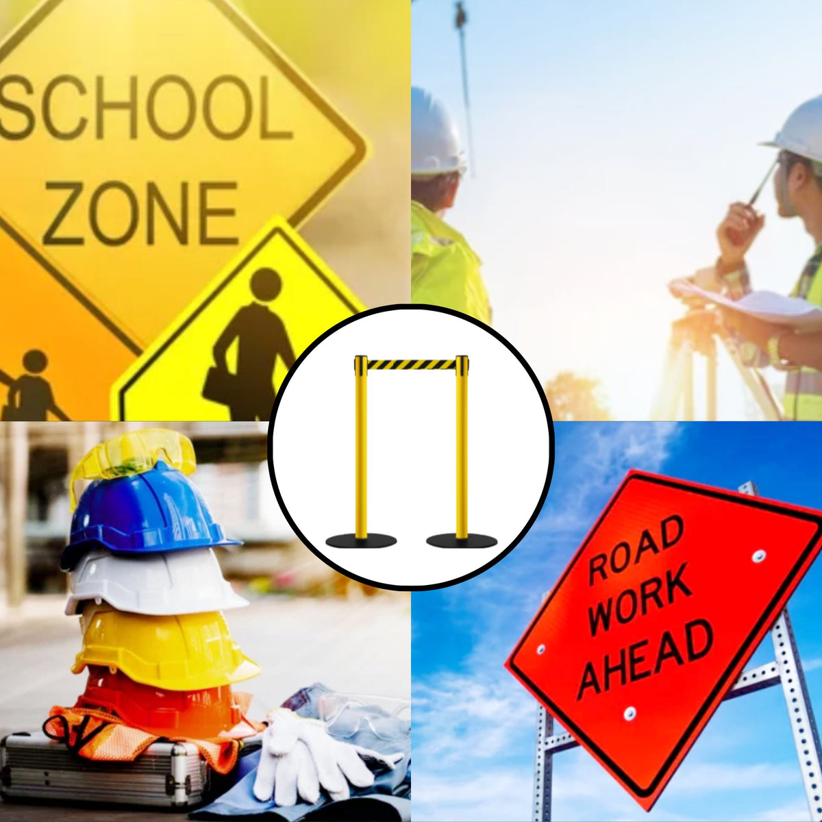 Safety Stanchion Retractable Belt Barriers, Low Profile Steel Base, Yellow Post, 9 Ft. Belt - Montour Line MSX630