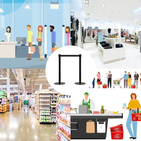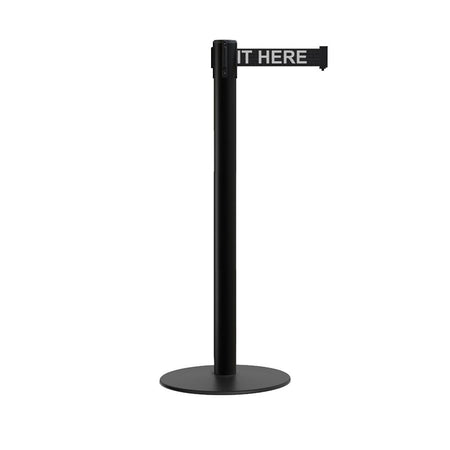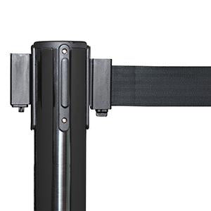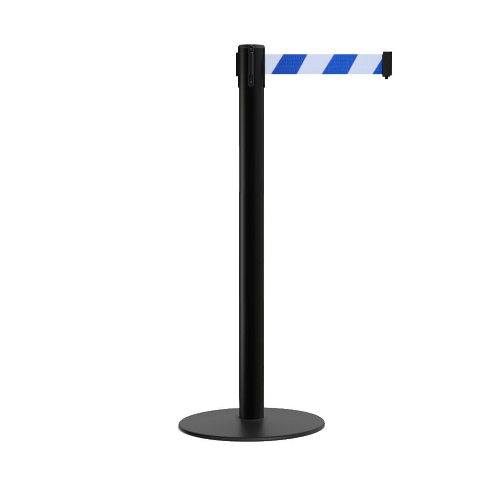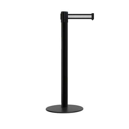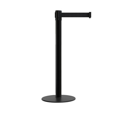 Retractable Belt Barrier Stanchion, Low Profile Steel Base, Black Post, 9 Ft. Belt - Montour Line MX630