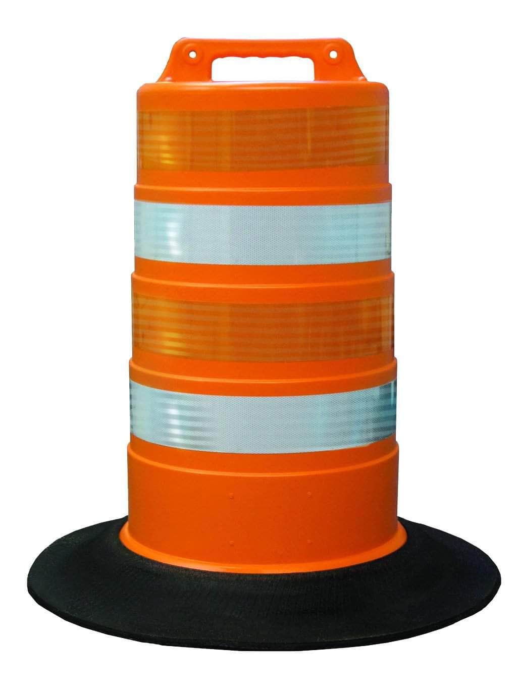 Commander Traffic Barrel with Reflective Tape and Tire Ring Base Option