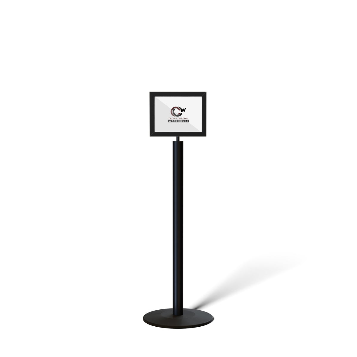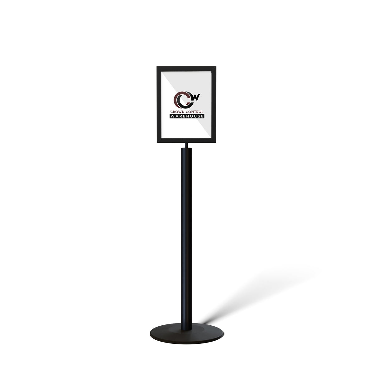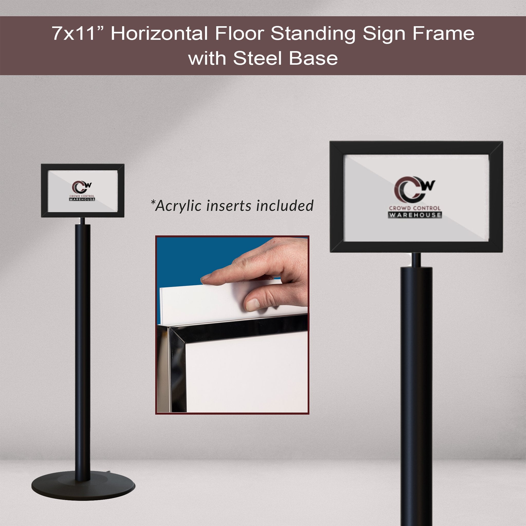 Floor Standing Sign Frame, Black Post, Steel Low Profile Base