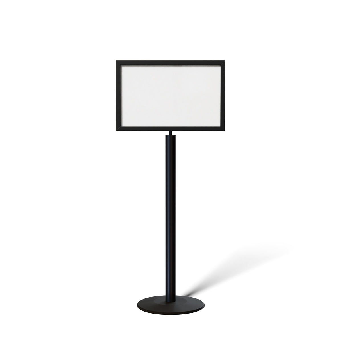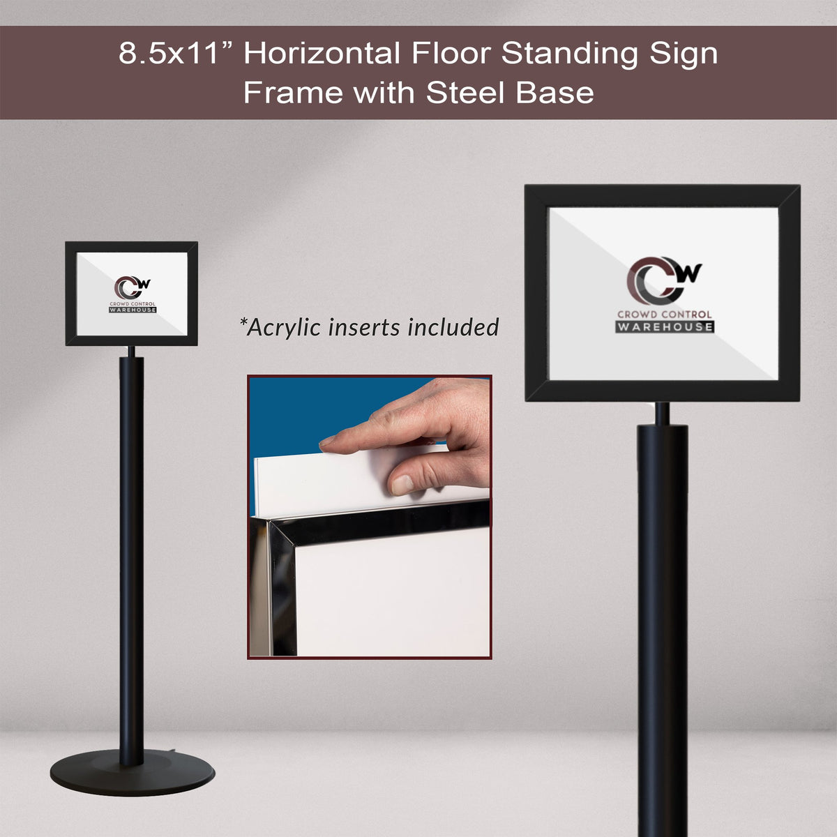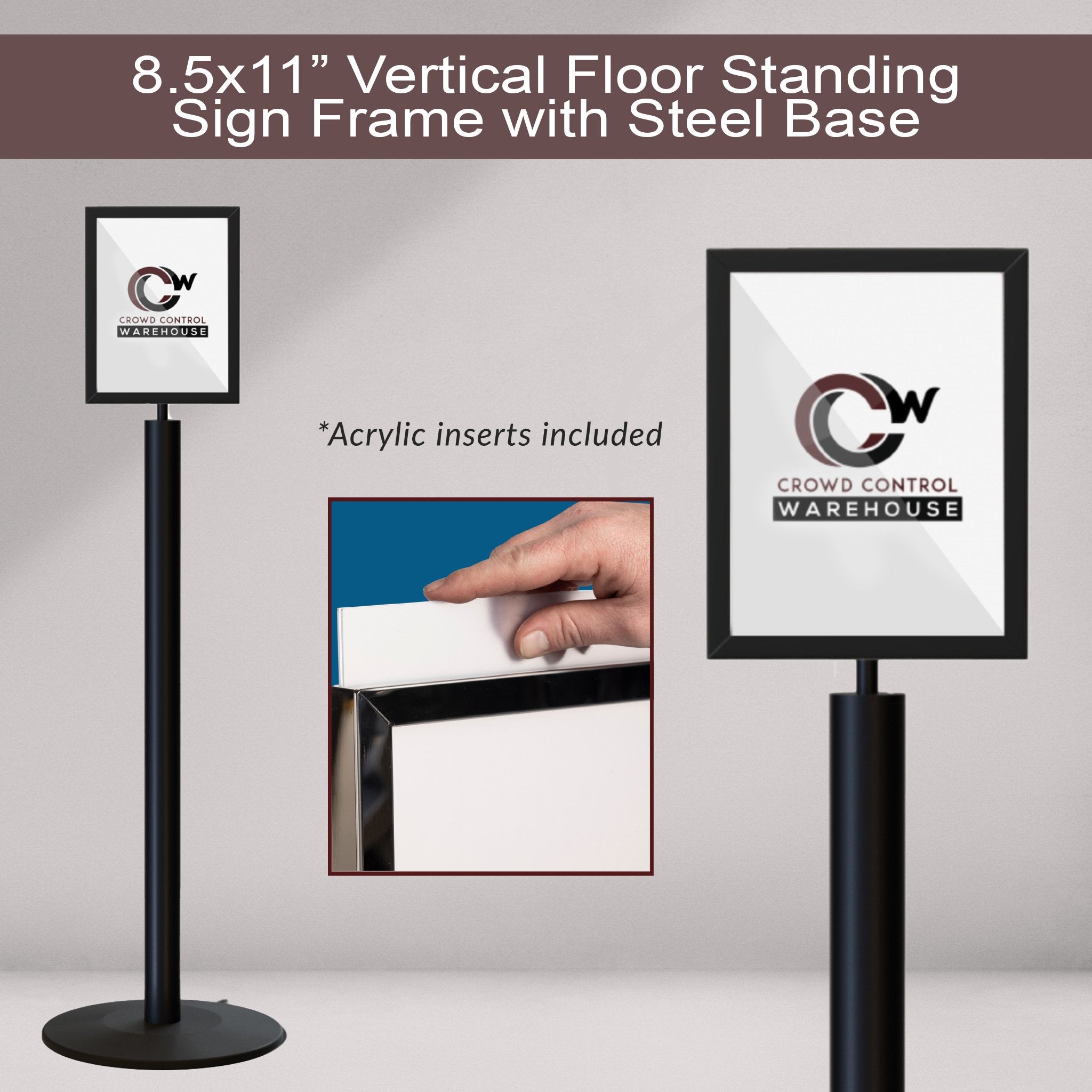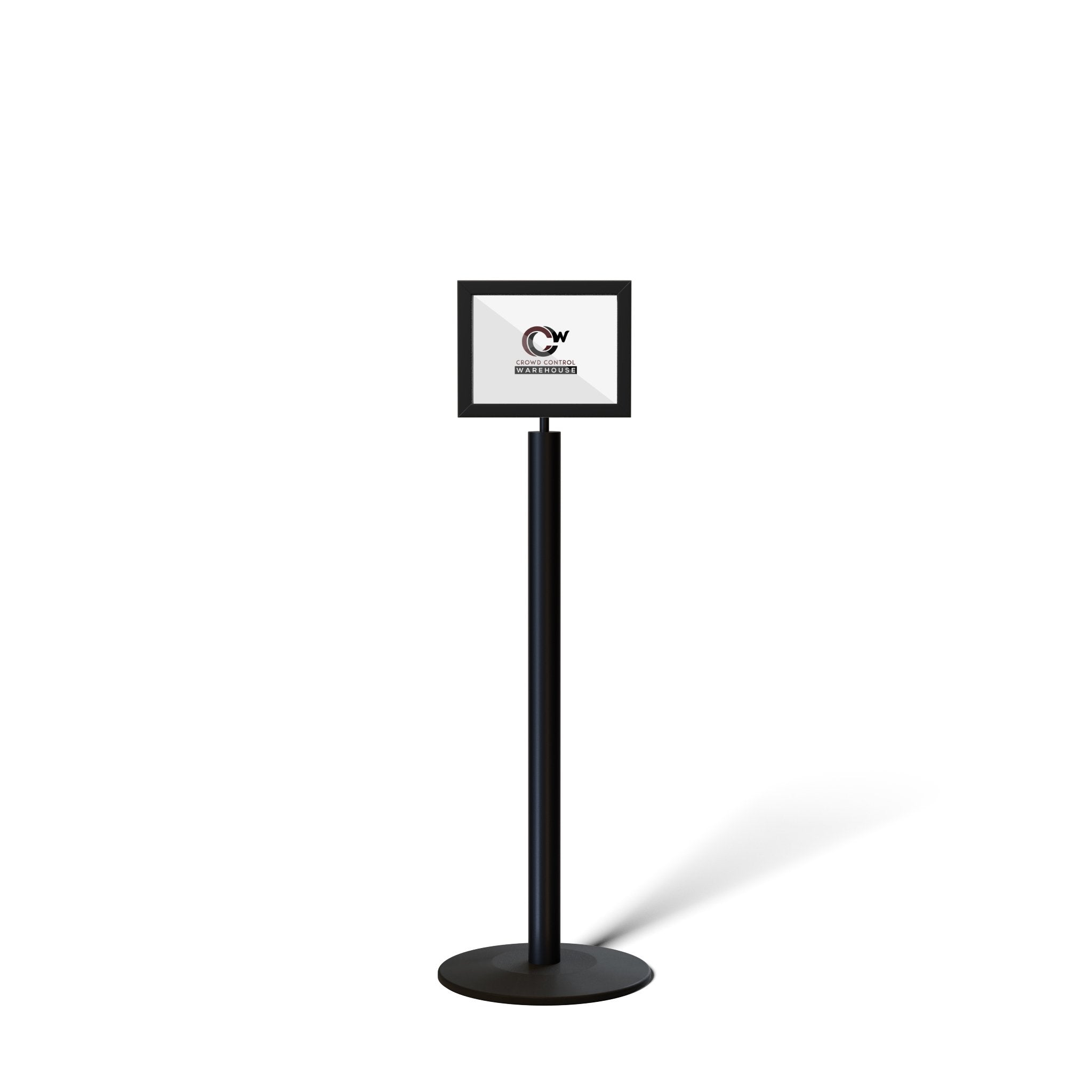 Floor Standing Sign Frame, Black Post, Steel Low Profile Base