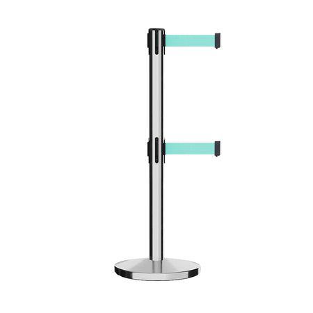 • (1) Polished Stainless Steel post retractable belt barrier with 9ft. dual belt, your choice of belt color