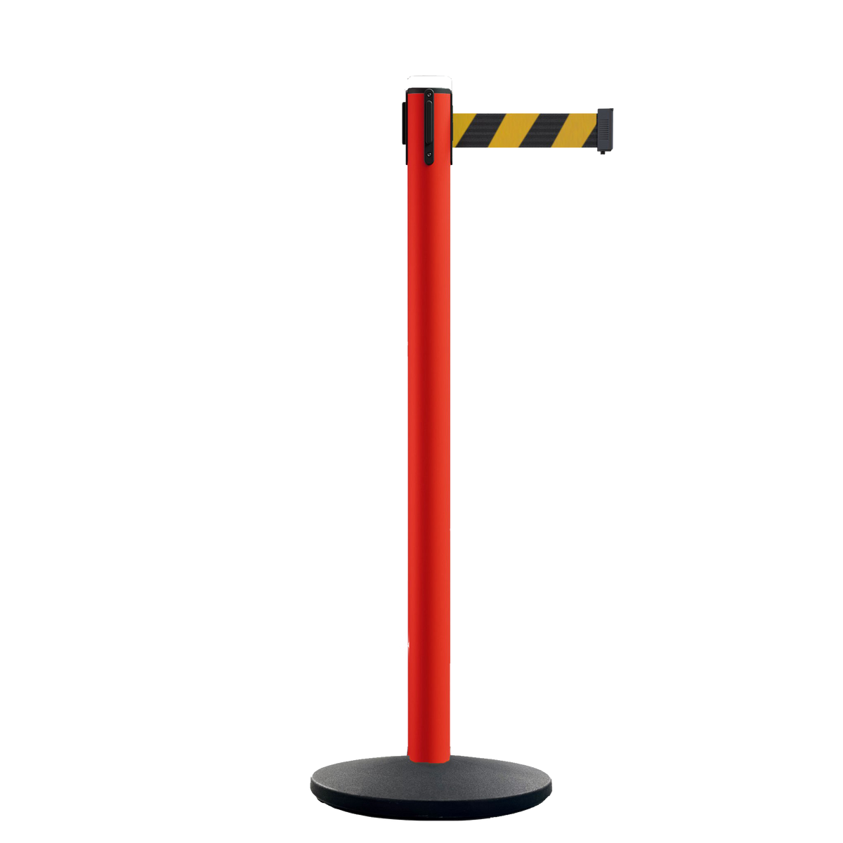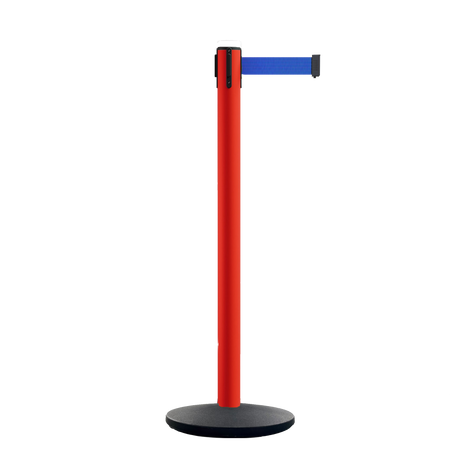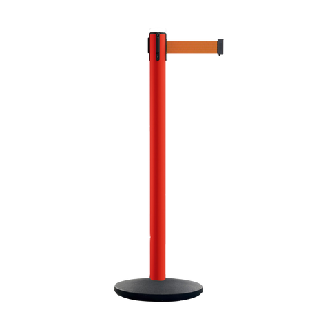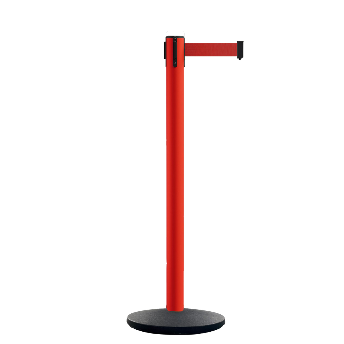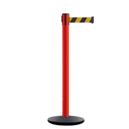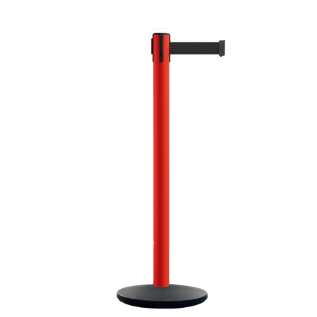 Safety Retractable Belt Barrier Stanchion, Red Post with Heavy Duty Cast Iron Base, 14 ft Belt – Montour Line MI650