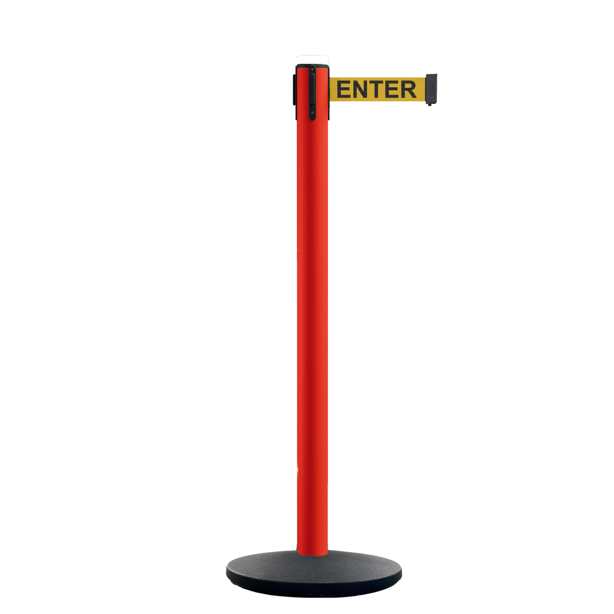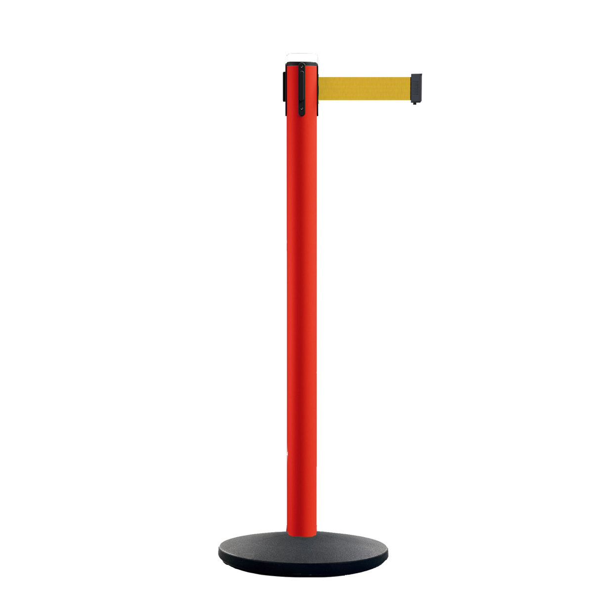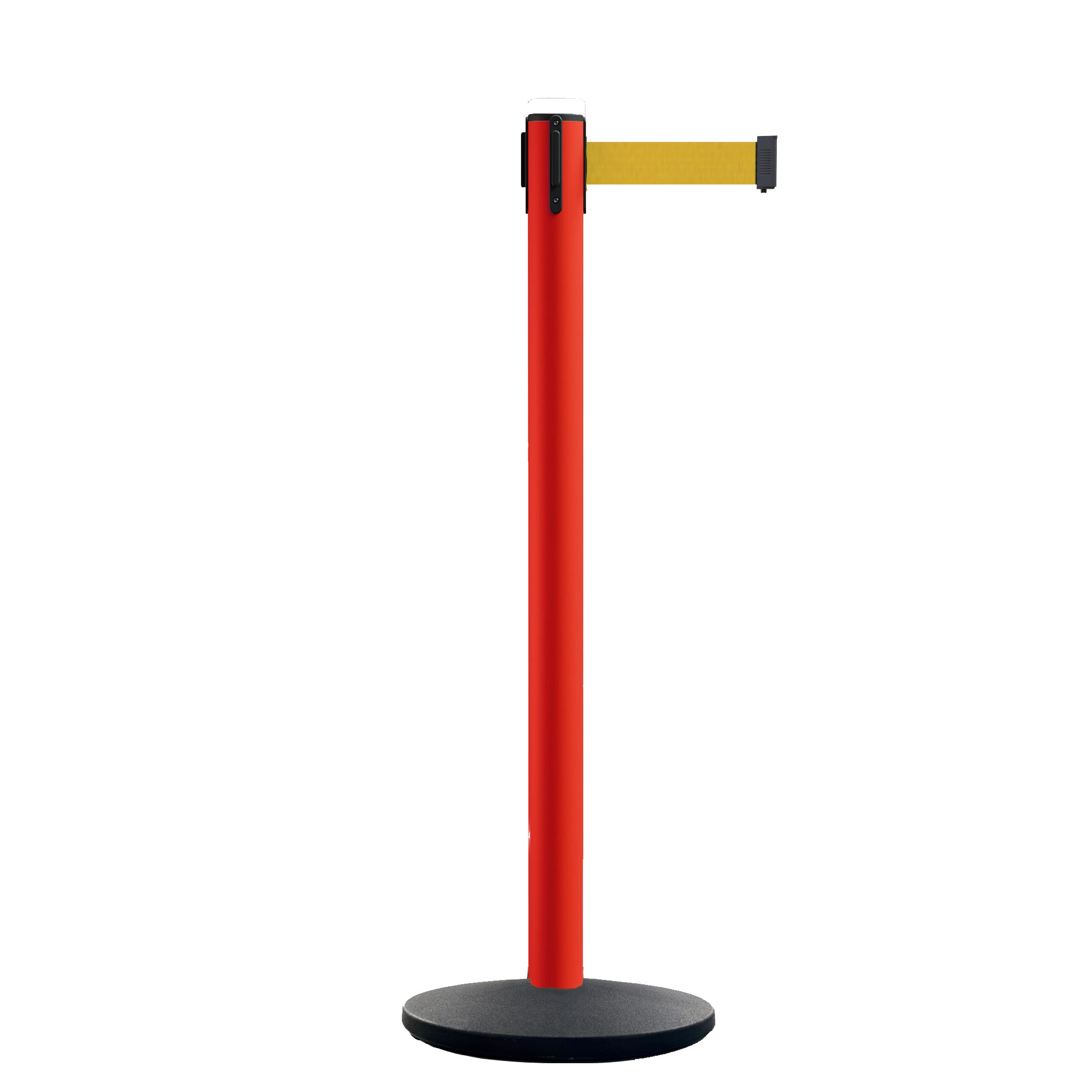 Safety Retractable Belt Barrier Stanchion, Red Post with Heavy Duty Cast Iron Base, 14 ft Belt – Montour Line MI650